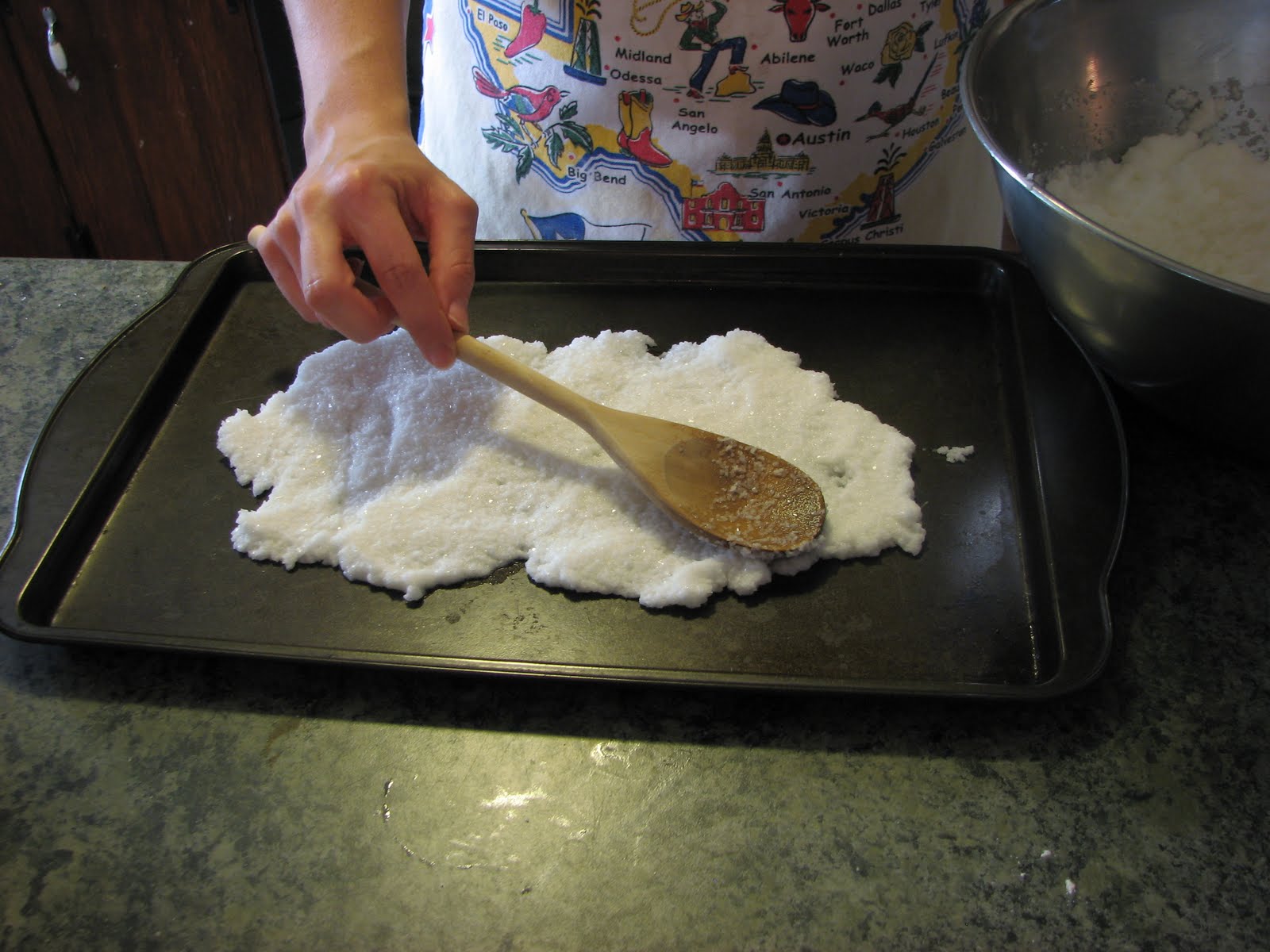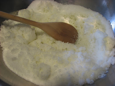 It trickles slowly through the ice. Let it have time to cool, then pour your sugared water over it.